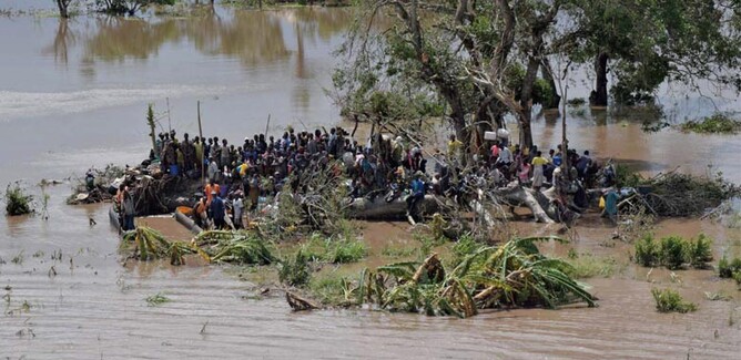 As they flew back, they saw the full extent of the damage. The area inland from Beira was just one enormous sea of water. They immediately set about survey flights of the area and gave the government an update then commenced rescue flights, literally plucking people from trees and rooftops by longline and lifting them to the nearest high ground. INGC the government disaster relief agency, then made emergency food aid available to them to drop to people in these isolated spots, many of them on no more than a tiny island surrounded by miles of water.