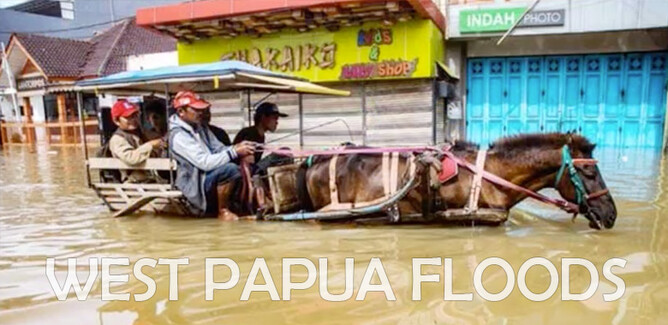 Heavy rain and flash flooding has hit the communities of West Papua and a huge mudslide has taken the lives of at least 58 people so far, and many more are missing, possibly buried beneath a sea of mud. There are reports of children been swept away from their parents as the flash flood roared through the area.