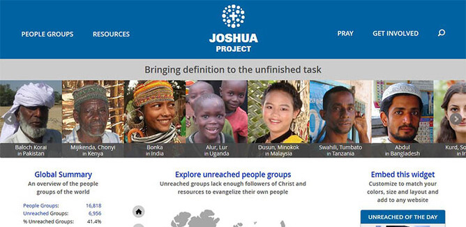Joshua Project helps define the unfinished task of the Great Commission by highlighting unreached people groups.