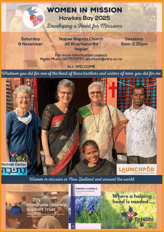 We’re excited to let you know that one of GC3's mission partners, Ruth (DPG Day 14), will be speaking at the Women In Mission event in Hawkes Bay in November! This is a fantastic opportunity to connect, ask questions, and discover more about missions Come along, get inspired, and be part of the conversation!